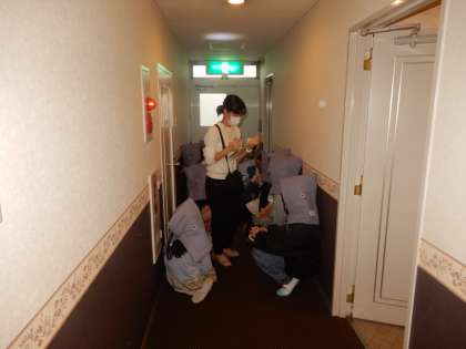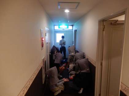 避難訓練、もしもに備えて真剣に行いました。