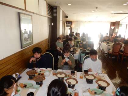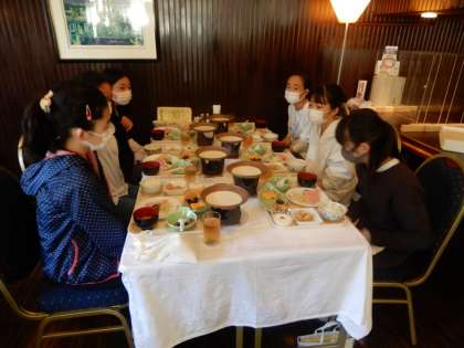 朝食です。みんな黙食です。よく食べて元気モリモリ。