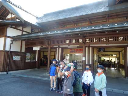 華厳の滝のエレベーター乗り口。男体山が目の前によく見えます。