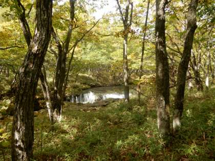 竜頭の滝からスタートします。まずは「しゃくなげばし」を目指します。いい天気です。