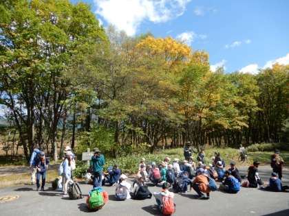 小田代ヶ原のバス停に到着。ここで昼食&トイレタイムです。