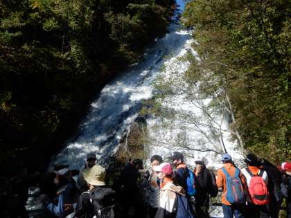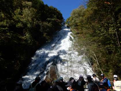豪快な流れの湯滝。迫力にみんな圧倒されていました。