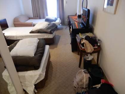 おはようございます。3日目の朝です。6時起床。まず健康チェックをします。部屋も片付いています。