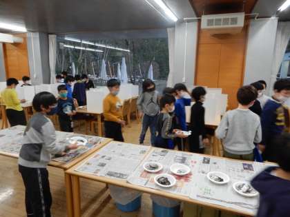 焼きりんごは、夕食時にいただきます。食堂に持っていきました。
