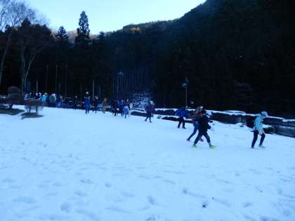 ビレジの前はこんな感じの雪景色です。ここだけ切り取ると、まるでゲレンデ。天気がよいので、ポカポカ陽気です。