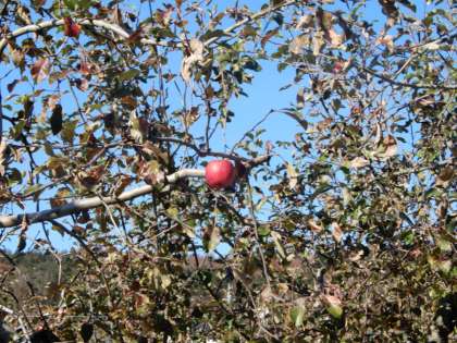 りんご畑の横を通ります。残念ながら、もう旬は過ぎてしまいました。よく見るといくつか残っていました。