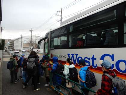 ?3年生が社会科見学に出かけます。バスに初めて乗って、区内めぐりをします。