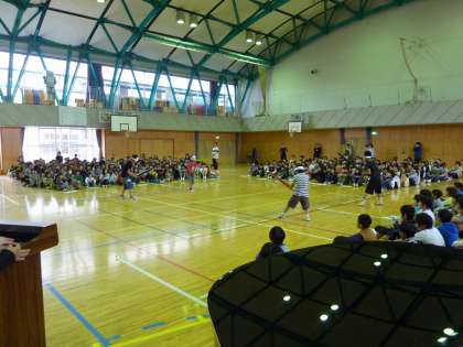 運動会でも活躍した八幡山音頭係の児童も、協力
