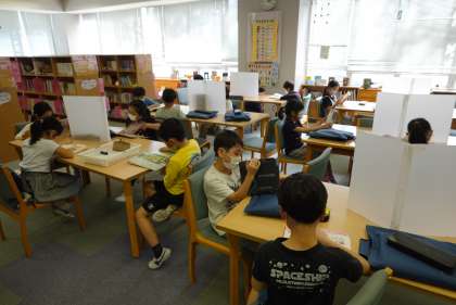 5時間目に音楽室を覗くと3年1組が元気な声で校歌を歌っていました。近年はコロナウイルス対策で全校で校歌を歌う機会がめっきり減ってしまっていましたが見事な歌声です。