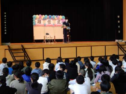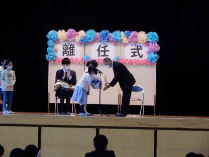離任式がありました。5,6年生が体育館に集まって式をしている様子を、2,3,4年が教室のテレビで観ました。懐かしい先生方からお話を伺い、みんなで校歌を歌ってお別れしました。