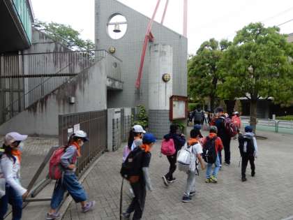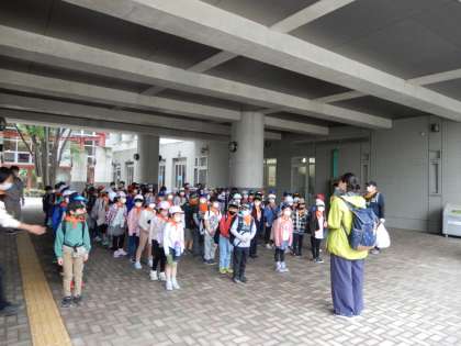 3年生が、芦花公園へ遠足に行きました。あいにくの曇り空ですが、みんな元気に出発しました。