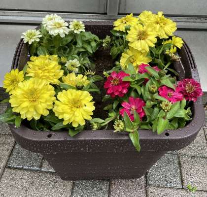 飼育・園芸委員の児童が植えた花は、ニチニチソウ、ヒャクニチソウ、ベゴニアです。これからの季節、盛んに咲いてくれることでしょう。