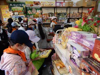 おみやげ購入タイム。人気の道の駅だけに、混雑しています。