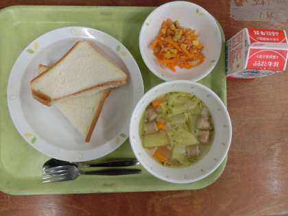 献立は「ジャムサンド、ポトフ、にんじんサラダ、牛乳」です。