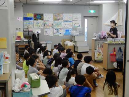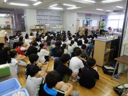 7月の第1週の月曜日は、学年朝会です。学年ごとに集まって、その学年に応じた話がありました。その後、ユニセフ募金の説明の動画を視聴しました。