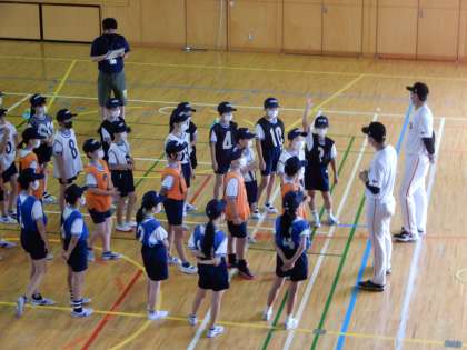 名をお迎えして、体育館で行いました。ボールの投げ方の基本を教えていただき、キャッチボールをしました。その後チームに分かれて、簡単なゲームを楽しみました。短い時間でしたが、みんなよくがんばりました。