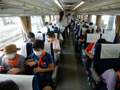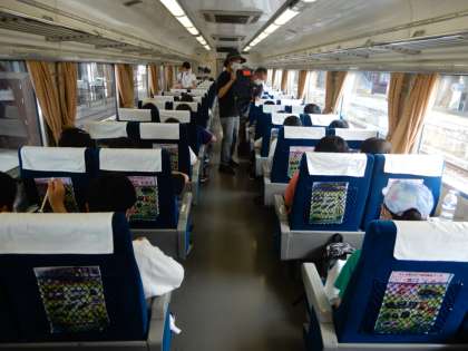 発車はまだですが、車内で昼食をとります。進行方向を向いて、黙食です。