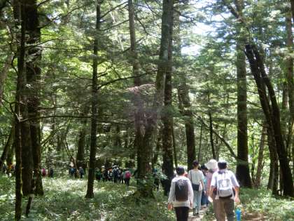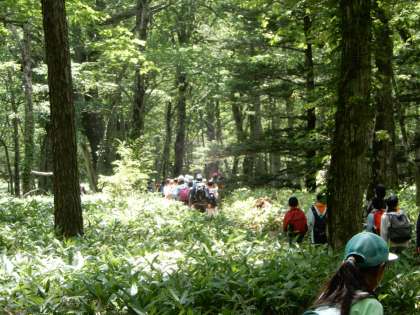 戦場ヶ原ハイキングに出発。まだまだみんな元気です。?