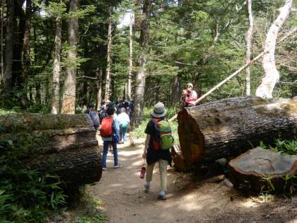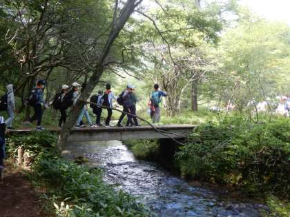 国道を安全に渡り、ゴールの光徳牧場まであとわずか。空腹を訴える子が続々と。がんばれ!