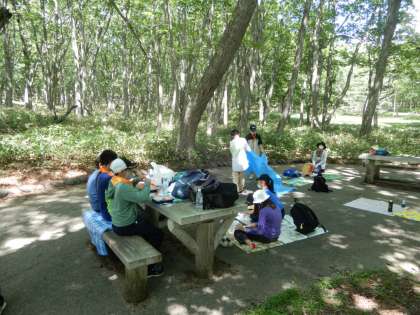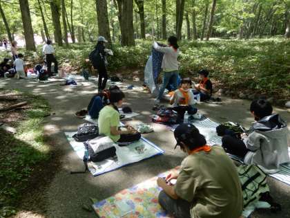お弁当タイム。行動班ごとに揃って、いただきますをしました。