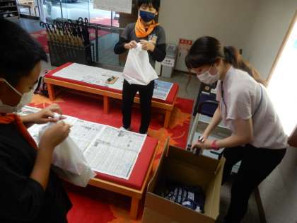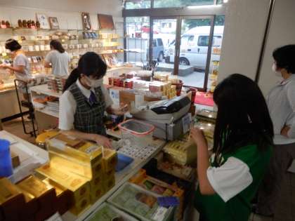 レジで2000円ピタリ賞も、何人か出たようです。おみやげはエコバッグか名前入りのレジ袋に入れて、クラスごとに段ボール箱で明日まで保管します。