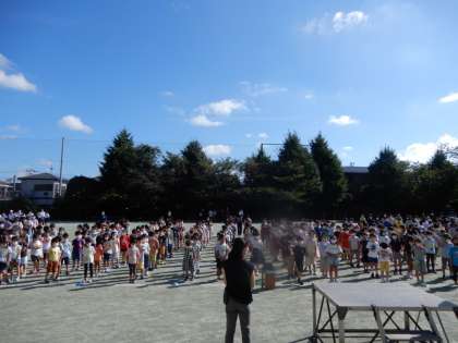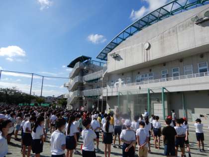 今朝の全校朝会は、校庭で全校児童が集合して行いました。全校朝会で児童が一堂に会すのは、3年ぶりです。よい天気のもと、朝の爽やかな空気を吸いながら、みんなと顔を合わせて話ができたこと、とてもうれしく思います。今週も張り切っていきましょう。