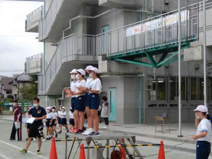 今朝は、ハチリンピックの全校練習がありました。開会式は1、2、3年生と6年生、閉会式は4、5、6年生が参加して流れを確かめました。今にも雨が落ちてきそうな空でしたが、みんな真剣に取り組みました。