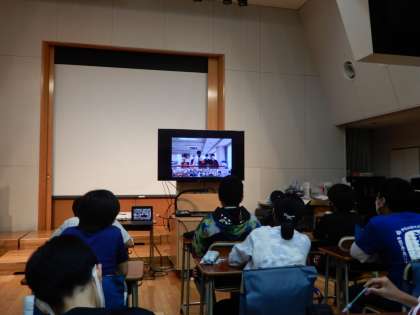 昼休みに音楽室で、みどりの学び舎4校による、児童会生徒会交流がありました。今回はオンラインで各校を結んで実施しました。それぞれの学校での取組を発表し、生徒会への質疑応答が行われました。みんな真剣に聞いていました。