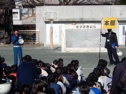 今日は、火災の場合の避難訓練を行いました。職員室から火が出た、としたため放送機器が使用できない想定でした。教員や主事が「火事です、避難してください」と声をかけて実施しました。その後、4年生が煙中避難を体験しました。今後も様々なシチュエーションで避難訓練を行なっていきます。