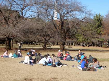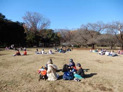 砧公園で昼食タイム。ねむのきひろばで、のんびりお弁当をいただきます。