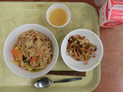献立は「みそラーメン、青のりフライドポテト、みかんゼリー、牛乳」です。