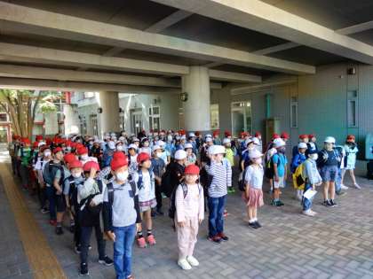 3年生が芦花公園へ遠足に行きます。とてもよい天気です。