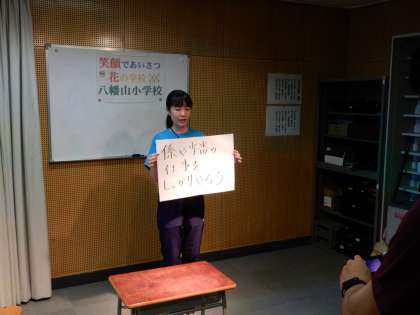 今朝は雨のため、テレビ放送で全校朝会を行いました。学校長からは、春の全国交通安全運動と道路への飛び出しは危険という話がありました。石黒主幹教諭からは、カメの引越しの話があり、バスケットボールチームの表彰と続きました。もう少しで梅雨入りするかもしれませんね。