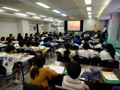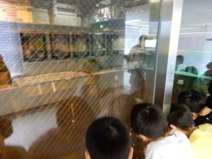 全体で説明を聞いたあと、クラスごとに分かれて、清掃工場内を見学しました。本物の迫力をガラス越しに感じることができました。