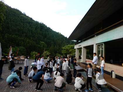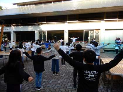 朝会では、ラジオ体操をして、体を目覚めさせました。みんな元気です。