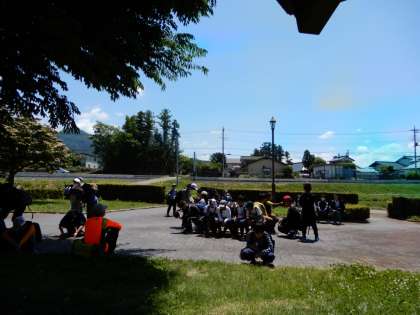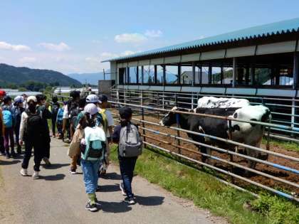 牛舎の横を通り、吊り橋を渡ったらもうすぐゴールです。がんばれ!