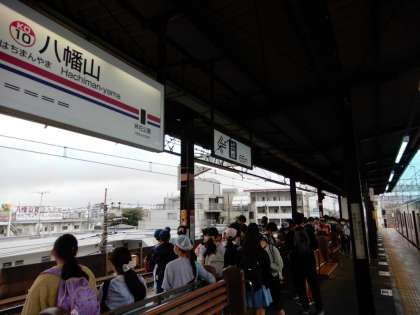 6年生が「こころの劇場」に出かけます。府中市まで電車に乗って行きます。まだ少し雨が降っています。