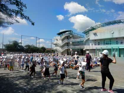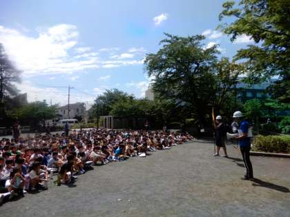 今日は、2次避難の訓練をしました。地震が起きた想定で、まず校庭へ避難しました。その後、火災が発生したため、将軍池公園まで移動しました。梅雨の晴れ間の日差しの強い中でしたが、みんなしっかりと訓練をしました。