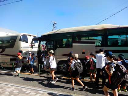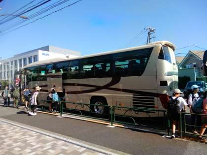 バスに乗車。2台で日光へ向かいます。行ってきます。