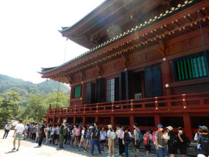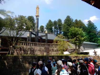 輪王寺に到着。クラスごとに案内人の説明を聞きます。