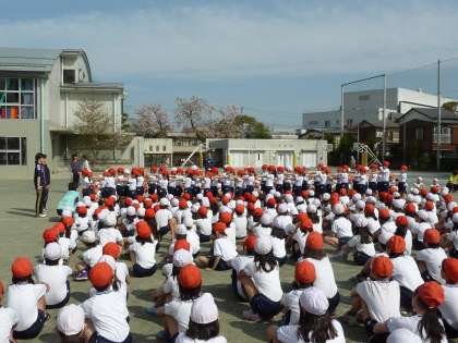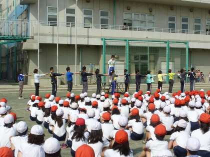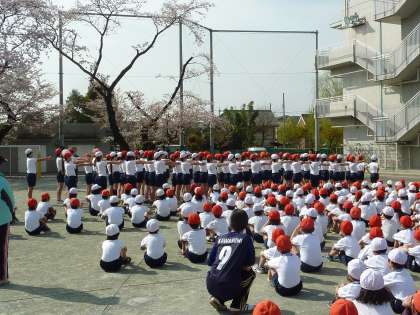 13日(金)は、体育朝会でした。「前へならえ」の練習をしました。