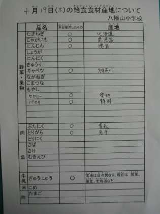 4月19日の主な給食食材の産地です。