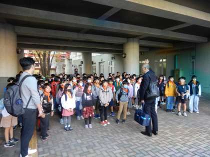4年生が社会科見学に出かけます。よい天気に恵まれ、暖かいです。1日しっかり見学します。