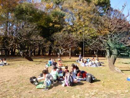 砧公園で、昼食タイム。みんなおなかがぺこぺこです。