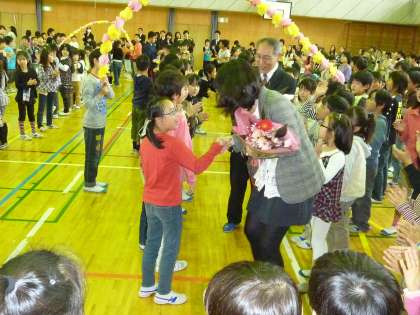 本校を離任された猿渡副校長先生や、下和田先生と、お別れをしました。
