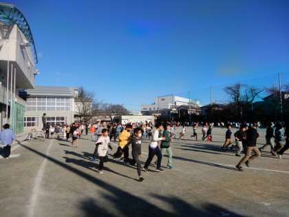 今朝の体育朝会は、ランランランニングを行いました。3分間、自分のペースで走ります。今日から2週間、中休みの終わりに走ります。寒さに負けず、元気な体を作る八小の子供たちです。