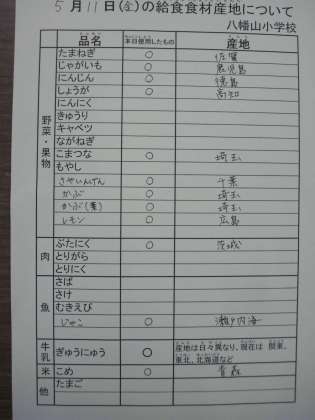 5月11日の主な給食食材の産地です。