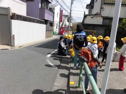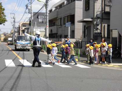 いつもお世話になっている武藤さん、成城警察署の方々、校外委員の保護者の皆様など、多くの方々にご指導いただきながら、実際に横断歩道を渡る実技を行いました。