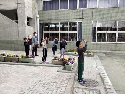 4月23日(火)3校時、5年3組の教室では理科の学習をしていました。“今日は雲の観察をします“という先生の言葉に、子供たちは大喜び。タブレットを持って校庭に行き、雲の写真を撮りました。そして、教室に戻って雲の様子をスケッチしました。じっと見て、細かく描く様子はとても立派でした。