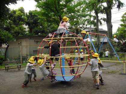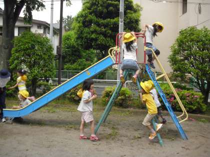 鉄棒やすべり台などの遊具を使って遊んだり、こおりおになど